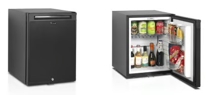 Tento kompresorový minibar je vynikajúcou voľbou pre hotely v teplejšom prostredí. Takzvaný water-pack udržuje v minibare nízku teplotu, aj keď nie je v prevádzke. Minibar má čierny vonkajší povrch a je navrhnutý tak, aby bol elegantne nenápadný.