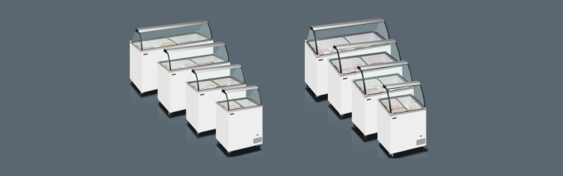 Rady TEFCOLD IC-SC SO a TEFCOLD IC-SCE SO obsahujú kvalitných distribútorov zmrzliny za konkurencieschopnú cenu. Má oblý presklený kryt a je k dispozícii s rovnými posuvnými presklenými vekami alebo oblými posuvnými presklenými vekami pre skvelú prezentáciu produktu.